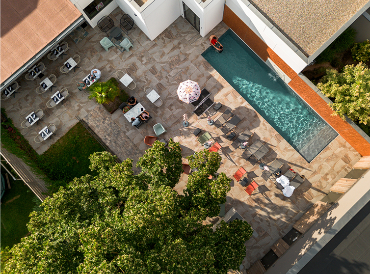 Entièrement rénové, l’établissement mêle lignes épurées, matières nobles et touches végétales pour créer une atmosphère à la fois élégante et accueillante.